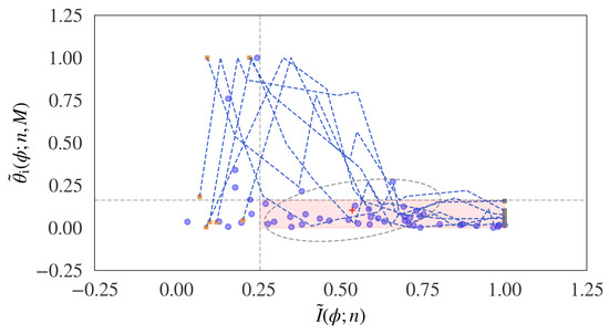 Adopting the same scaling principle as indicated in Equations (9)–(12), leads to the scaled version of the normalized relative difference entropy given by