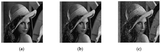 As it is subject to various noise interference during transmission, an excellent encryption scenario should resist noise attacks. The salt and pepper noise is tested at intensities of 0.005%, 0.05%, and 0.1% in “Lena”, as shown in Figure 7.