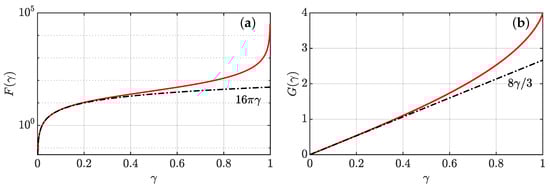 We refer the reader to [25] for a rigorous derivation of such result. The function is shown in Figure 2a. It starts from 0 at , corresponding to a state of rest (), with a linear behaviour near the origin, and diverges at . In the latter case, the velocity field is diverging on a whole semi-axis defined by , such that . Hence, characterizes the intensity of the velocity field of a pinçon.