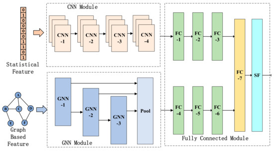 With the popularity of graph representation learning [16,17], researchers have begun to pay attention to using graph models to learn behavior graph features automatically. Jiang [18] used the double-stacked denoising autoencoder to obtain the embedded representation of a function call graph, spliced the feature vector of the function call, and then input it into the deep neural network for malware classification. Pektas [19] used an API call graph as a graphical representation of all possible execution paths that the malware could track during its run. The API call graph is embedded into the deep neural network and transformed into a feature set of low-dimensional numerical vectors.