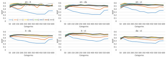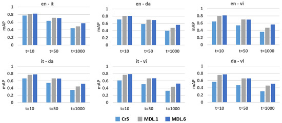 - Yarmohammadi, M.; Ma, X.; Hisamoto, S.; Rahman, M.; Wang, Y.; Xu, H.; Povey, D.; Koehn, P.; Duh, K. Robust Document Representations for Cross-Lingual Information Retrieval in Low-Resource Settings. In Proceedings of the Machine Translation Summit XVII Volume 1: Research Track, MTSummit 2019, Dublin, Ireland, 19–23 August 2019; pp. 12–20. [Google Scholar]