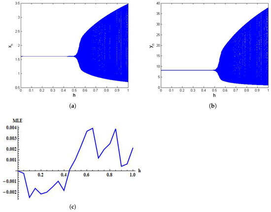 - Din, Q. Bifurcation analysis and chaos control in discrete-time glycolysis models. J. Math. Chem. 2018, 56, 904–931. [Google Scholar] [CrossRef]
