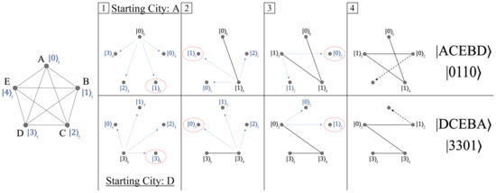 - Moylett, D.J.; Linden, N.; Montanaro, A. Quantum speedup of the traveling-salesman problem for bounded-degree graphs. Phys. Rev. A 2017, 95, 032323. [Google Scholar] [CrossRef] [Green Version]