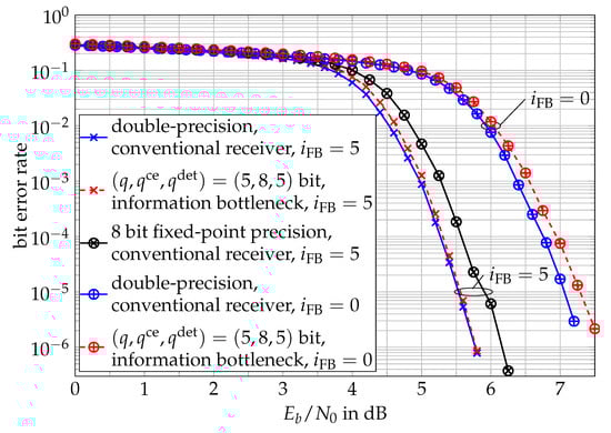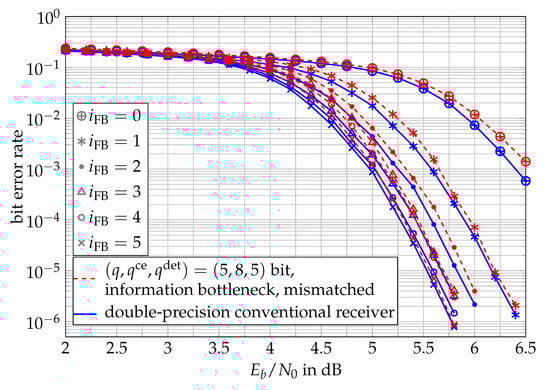 - Lewandowsky, J.; Stark, M.; Bauch, G. A discrete information bottleneck receiver with iterative decision feedback channel estimation. In Proceedings of the 2018 IEEE 10th International Symposium on Turbo Codes and Iterative Information Processing (ISTC’2018), Hong Kong, China, 25–29 November 2018; pp. 1–5. [Google Scholar]