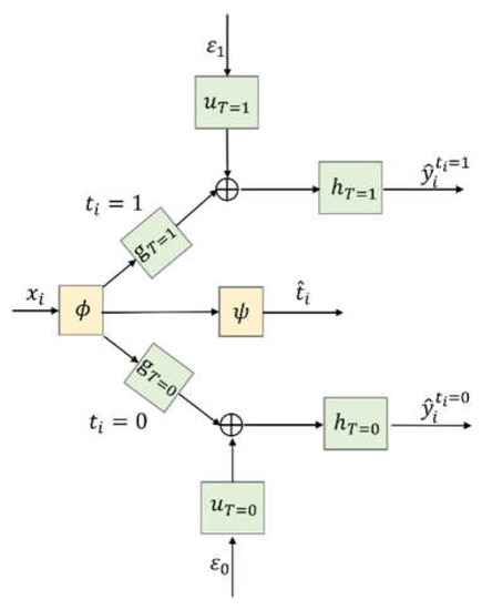 - Shi, C.; Blei, D.; Veitch, V. Adapting neural networks for the estimation of treatment effects. In Advances in Neural Information Processing Systems 32; Neural Information Processing Systems Foundation, Inc.: La Jolla, CA, USA, 2019. [Google Scholar]