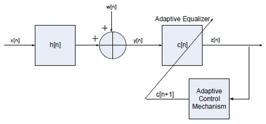 Figure 1 provides a description of the system under study. Please note that the described system is recalled from [,]. It should be noted here that the described system in Figure 1 is not unique but is a general description of a system using a blind adaptive equalizer to recover the input sequence from an unknown linear channel, as is the case in [,,] and in other works.