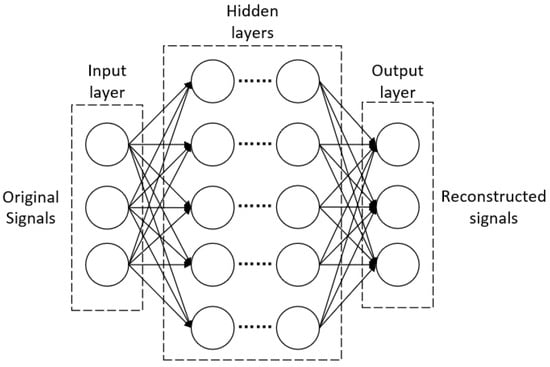 Muduli et al. [] introduced a method based on the Stacked Denoised Autoencoder (SDAE), to compress and reconstruct the FECG signals and adopted a model similar to the CS-based Multiple Measurement Vector model. The whole network was trained unsupervised with a gradient descent. Polania et al. [] used Restricted Boltzmann Machines (RBMs) to obtain the probability distribution of the sparsity pattern of ECG signals and reduce the measurement needed in the compression. As a result, the reconstruction accuracy was improved. Mangia et al. [] estimated the support with an oracle based on a CNN jointly trained with the linear mapping at the decoder. The use of a short-window can significantly reduce the computation complexity. Shrivastwa et al. [] proposed a CS framework based on CNN to compress and recover the bio-signals (electroencephalogram, EEG). They converted the EEG signals into two-dimensional data, and used the binary image representation of the data to train the model. Mangia et al. [] exploited an oracle-based CS decoder in an encode–decoder pair to estimate the coefficients by pseudo-inversion. When the compression ratio is higher than 2.5, this method can achieve a good performance in the recovery of the synthetic ECG signals. Shrivastwa et al. [] used a multi-layer perceptron regressor with a stochastic gradient descent solver to form a CS network which is mainly comprised of full connection layers. Through the iterative boundary values analysis on the size of the network, a network with a better structure can be selected and perform well on the reconstruction.