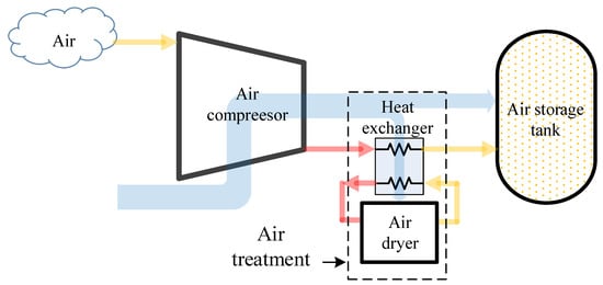 At present, the traditional air compressor system in the industrial field consists of an air compressor and an air treatment as shown in Figure 3. Air treatment is used to remove the moisture in the high-pressure air for corrosion prevention of equipment in the downstream.