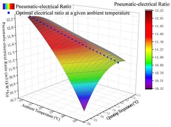 However, for the proposed precooling air compressor system, the overall energy consumption of the system is increased by the refrigeration energy consumption, so its pneumatic-electrical ratio δ′ can be expressed as: