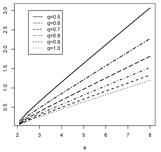 Moreover, FCE becomes the CE when the parameter q takes the value one, i.e., , as given in (3). On the other hand, the FCE is nonnegative and a concave function of the distribution, but it is a convex function of the parameter From (7), it is clear that takes values in In particular, for all if, and only if X is a constant.