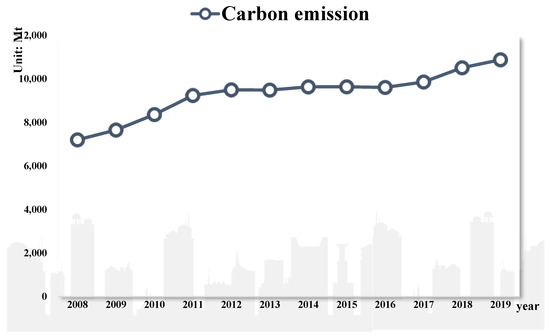 China’s carbon emissions from 2008 to 2019.