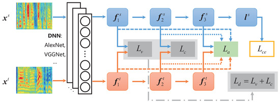 To illustrate the process of deep feature extraction clearly, firstly, we formalize the labeled training dataset as and the unlabeled testing dataset , where and are donated as the spectrogram of the ith speech sample in source data and the jth sample in source data, represents the emotion label of the ith speech in source dataset, and and are the numbers of source and target samples. Notably, since our proposed method is based on unsupervised domain adaptation (UDA) in TL, the target speech samples have no labels.
