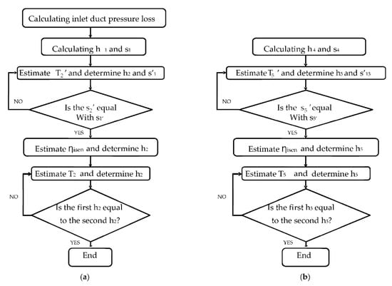 Design point performance evaluation flowchart: (a) low-pressure compressor; (b) high-pressure turbine.