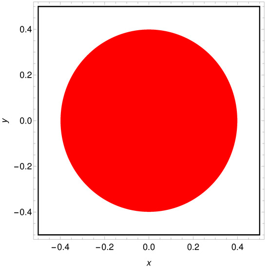 There are classification problems for which is finite. For example the AND logic gate is equivalent to classification of the database: . In this paper, I consider a geometrically inspired problem of determining the color of a randomly selected point located on the Japanese flag (cf. Figure 1). The red disk (sun) is centrally located in a white square (here represented by the Cartesian product ). Let us notice that the location of the Japanese flag differs from the one considered in our previous paper on the problem [47] where it was . This has been done intentionally to see if object location can influence classifier accuracy. The disk radius is ; thus, the areas of the sun and the white region are equal. Records of the considered problem have the form: , where are the point coordinates, and the record type tells if the point is located in the red or in the white region . A network that gives a random answer or a network that always gives the same answer (“the point is red” or “the point is white”) to all inputs solves the problem with 50% accuracy (or with a 50% chance of obtaining the wrong answer). I postulate that the Japanese flag problem can be solved with much higher accuracy by a network of chemical oscillators.