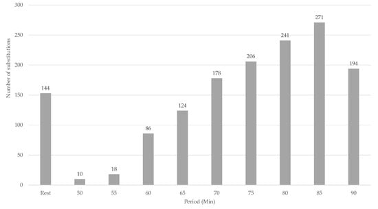 Number of substitutions in the second half per 5-minute period.