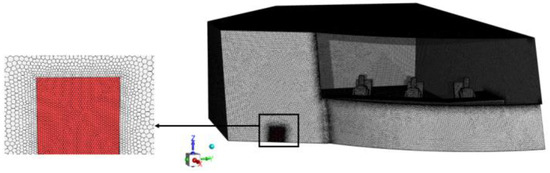 In this section, unstructured polyhedral meshes are generated for the cockpit model and the meshes are refined for places with intense flow changes. To ensure that the results of this paper are independent of the number of cells, mesh independence verification is carried out before the numerical calculations. The mesh of the cockpit geometry model and the locally enlarged mesh are shown in Figure 5.