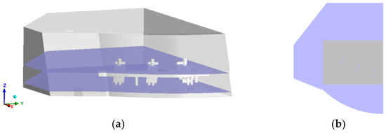 As shown in Figure 7a, two typical surfaces are selected in the Z-direction, i.e., Z = 1.0 m (driver’s shoulder) and Z = 0.2 m (driver’s foot). As shown in Figure 7b, the grey areas are the selected evaluation areas.