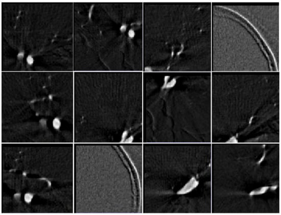 Applying the sliding window strategy, patch selection by information entropy sampling showed that the proportion of patches containing aneurysms was 12%., i.e., 12% of the selected patches included aneurysms. Additionally, through patch selection by gradient entropy sampling, the proportion was increased to 16%. The patches selected by the gradient entropy sampling strategy are shown in Figure 2. This shows that most of the selected patches were aneurysms or blood vessels.