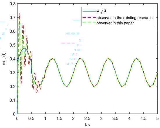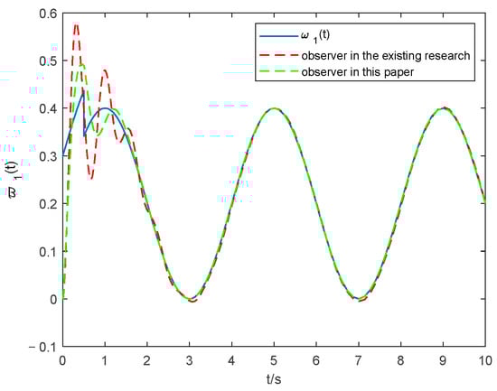 From Figure 2 and Figure 3, it can be seen that both the observer proposed in this paper and that in [30] have a good estimation. However, it is apparent from Table 1 that the observer proposed in this paper has a better state tracking accuracy and shorter time than that in [30], which verifies that the observer proposed in this paper is able to achieve the consistent tracking of lumped faults in finite time. Therefore, this can help improve performance and reduce dynamic computing load through a timely and accurate estimation.
