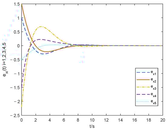 In this section, we will take a numerical simulation to verify the effectiveness and superiority of the method proposed in this paper compared with the method proposed in [30,40]. Consider a leader–follower MAS with one leader and five followers, whose topology structure graph is shown in Figure 1.