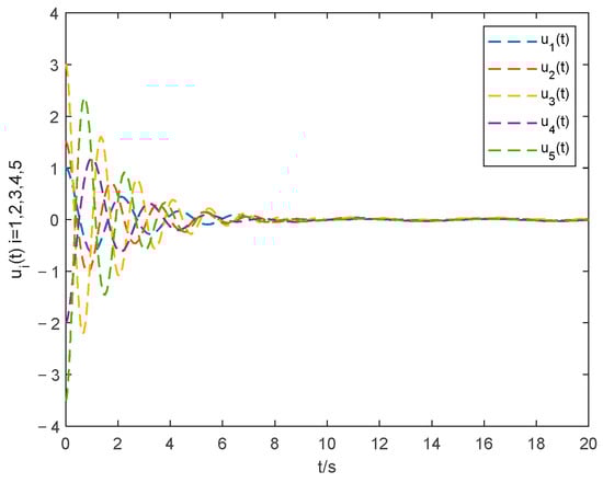 The curve of the control input by the proposed controller and the protocol in [40] are seen in Figure 8 and Figure 9. The curve of the control input in this paper is smoother and better at eliminating the chattering problem than that in [40].