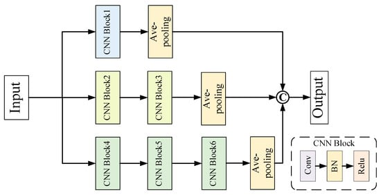 The marginal feature extraction module adopts ResNet-18 1D [5] to extract fault features. The conditional feature extraction module consists of three conditional feature extractors on three spaces, as shown in Figure 3. Here, multiple small convolutional layers with different levels are stacked. To present the model structure more clearly, Table 1 shows details of the implemented conditional feature extraction module. Since the three conditional feature extractors have different depths, convolutional kernel sizes and parameters, richer feature representations with semantic and detailed information can be extracted for the fault diagnosis task. The conditional features learned in the three spaces are fused together to form high-level features, providing informative cues for the fault classifier.