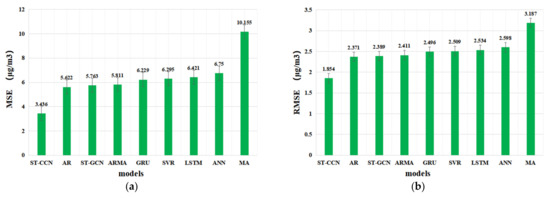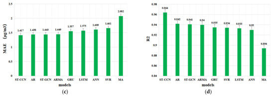 - Zhao, J.; Lin, S.; Liu, X.; Chen, J.; Zhang, Y.; Mei, Q. ST-CCN-PM2.5: Fine-grained PM2.5 concentration prediction via spatial-temporal causal convolution network. In Proceedings of the 4th ACM SIGSPATIAL International Workshop on Advances in Resilient and Intelligent Cities, Beijing, China, 2 November 2021; pp. 48–55. [Google Scholar] [CrossRef]
