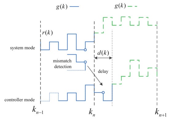In this case, (31) and (32) will be used for set . Then, suppose  From Figure 2, the controller is asynchronous with the system mode when , i.e., , and synchronous when , i.e., . Therefore, we have