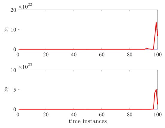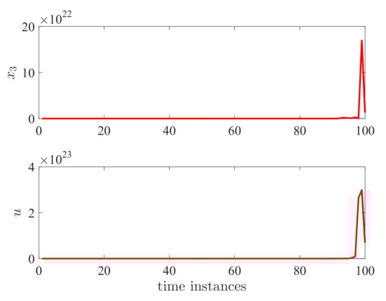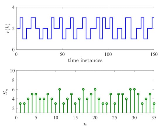 In this case, (33)–(35) will be used for set . Then, suppose  From Figure 2, it can be seen that during time interval , the proposed state feedback controller (7) is asynchronous with the systems mode. Meanwhile,  when . At time interval , the controller is synchronous with the system mode, hence, i.e., . Therefore, the expectation in (22) can be computed as: