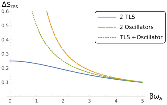 Let us also mention that similarly to mean force Hamiltonian theory, we assume in our work that the whole system (containing both the system and the reservoir in the mean force Hamiltonian case) is at the same temperature. However, there are possible generalizations of such a setup when the system interacts with two (or more) reservoirs at different temperatures [43]. In such a case, a natural analog of is a projector , where and are states of the heat baths with inverse temperatures and , respectively. The above equations assuming only one temperature, e.g., Equations (28) and (29), are not applicable in this case, but Equations (30)–(32), which are fundamental for our approach, still have their meaning. This suggests that it is possible to generalize the framework presented here to include such a multitemperature case, but it is not fully covered by the approach presented here as the scope of the current paper was focused on the one-temperature case. Nevertheless, we think that it is one of the most promising directions for future study.