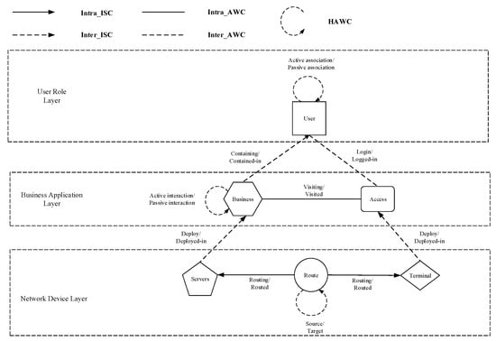 The Internet itself has a multilayered architecture, but the current network hierarchy is mainly dependent on the network communication protocols and information transmission methods during the operation of the Internet, and it is divided from the perspective of network construction, which is essentially a refinement of the components of the network infrastructure. However, we note that the underlying architecture of the Internet is a network of physical devices consisting of routing devices, servers and user terminals, which support the stable operation of the entire network. Based on physical equipment network support, the essence of people accessing the Internet is to obtain the services of various business systems in the network to meet their needs in various aspects such as economy, living, entertainment and social life, so many business interactions form an invisible network that carries people’s business production requirements. Finally, each user accessing the Internet is naturally given a virtual network user role when accessing the relevant business system services, and the user roles form various community structures based on business associations and online social activities, which together form this layer of social networking, which also becomes the mapping of the Internet at the social level.