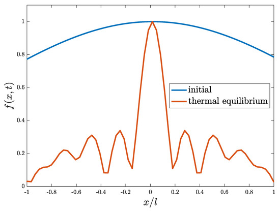 depends intimately on the behaviors of and measures the correlation between points separated by x at a given time t. Figure 2 shows at an initial time and equilibrium with the blue curve corresponding to the initial one and the red curve corresponding to the equilibrium one.