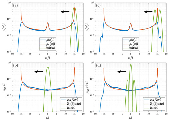 with , where is the Dirac delta function. The red lines in Figure 3 show the best fitting in position space, , and momentum space, :