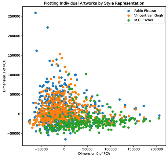PCA of individual artworks’ style representations.