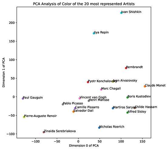PCA of aggregate artists’ color representations.