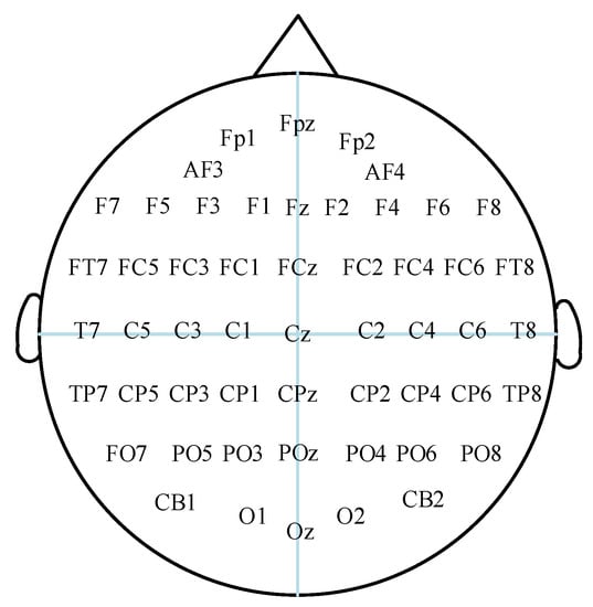 DEAP data [22] contains 32 subjects. Each subject has 32 channels of EEG signals and 8 channels of peripheral physiological signals. The 32-channel EEG signal was used as the experimental data for this paper. The electrode distribution positions are shown in Figure 7. The EEG signal was first sampled at a sampling frequency of 512 Hz; then, the sampling rate was reduced to 128 Hz and filtered by a bandpass filter of 4.0~45.0 Hz to remove electro-oculogram (EOG) artifacts. Each subject watched 40 1-min, emotional, music videos. After each video, the subjects were asked to self-assess through the SAM questionnaire on four dimensions of emotion: valence, arousal, dominance, and liking. The scale is based on a 9-point scale, with low scores indicating weakness and high scores indicating strength. The content of the DEAP dataset is shown in Table 1.