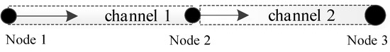 In addition, some researchers aim at extending MAC scheduling methods from single-channel networks to multi-channel networks. In multi-channel environment, the spectrum resource is divided into multiple non-overlapping channels, and the wireless interface (network card) of the node can choose one channel to complete communication. In this way, links in the same area are able to utilize different channels to transmit data simultaneously without interference. Hence, conflicts are avoided and the bandwidth is increased [6]. When a wireless node is configured with multiple interfaces, it can send and receive message at the same time-slot, which further improves the resource utilization [7]. The multi-channel data transmission is shown in Figure 1. In the physical layer, MIMO (Multiple Input and Multiple Output) and CR (Cognitive Radio) provide technical support for use of multiple channels. However, the application of multi-channel technology brings more complicated problems from hardware and software implementation. Due to channel difference and interface conflicts, it seems to be more difficult to design throughput-guaranteed MAC scheduling strategies for multi-channel wireless networks than for single-channel networks [8]. A series of MAC scheduling methods ensuring QoS (Quality of Service) have been proposed for multi-channel networks, which will be elaborated in the Section 2.