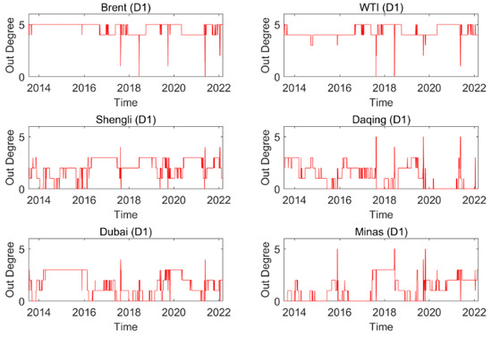 Dynamic out degree of each oil series on time scale D1.
