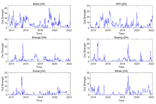Dynamic out degree of each oil series on time scale D4.