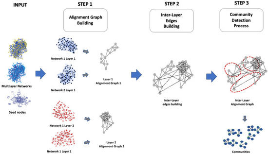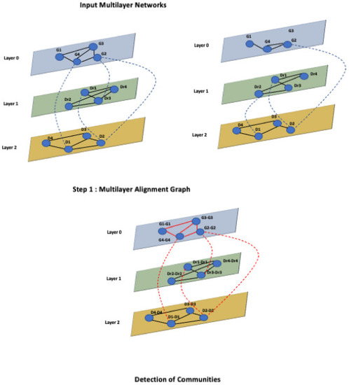 14]. Then, it analyses the inter-layer edges of the input networks to add inter-layer edges to the multilayer alignment graph. Once the alignment graph is built, we use an algorithm for detecting communities in multilayer networks to uncover relevant modules.