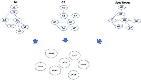 At this stage, the algorithm, starting from an initial list of seed nodes, builds the alignment graph by initially constructing two intermediate alignment graphs, which we call alignment graph layer 1 and alignment graph layer 2, for two networks belonging to layer 1 and two networks belonging to layer 2. Therefore, we define the alignment graph