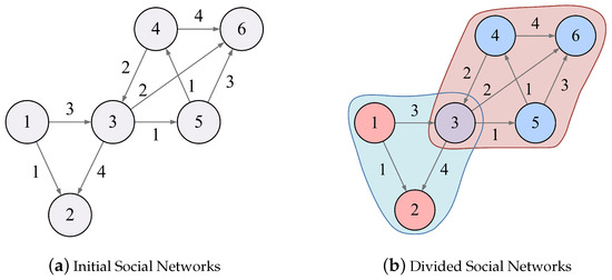 Real-world networks were used to validate the performance of GTIP and semantic community detection methods. The five semantic-rich real-world networks used in the experiment can be downloaded from https://www.aminer.cn (accessed on 1 August 2022) and https://snap.stanford.edu/data/index.html (accessed on 1 August 2022). (1) Academic Social Network (ASN): this dataset includes paper information, paper citations, author information, and author collaboration, and contains 1,712,433 authors (nodes) and 4,258,615 collaboration relationships (edges).