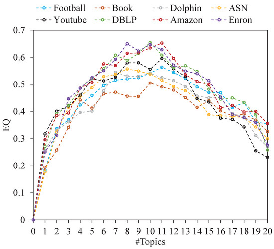 The number of topics (#Topics) in a document collection T can affect the size of the base of the semantic space; therefore, we verified the change in community quality when the number of topics was .