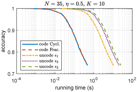 - Lee, K.; Lam, M.; Pedarsani, R.; Papailiopoulos, D.; Ramchandran, K. Speeding up distributed machine learning using codes. IEEE Trans. Inf. Theory 2018, 64, 1514–1529. [Google Scholar] [CrossRef]