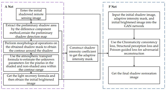 The flow chart of remote sensing image shadow detection and removal model based on AP Net.