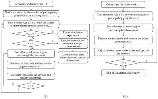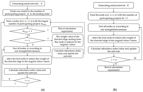 | Failure of multi-project knowledge dissemination nodes (MB) | (1) Multi-project nodes are ranked according to the number of projects they participate in, where nodes with the same number are also ranked according to their betweenness. (2) The highest-ranked node and its connected edges are removed. This is repeated times to simulate successive node failure. | |