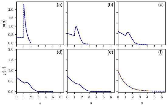 . The resulting joint length probability is non-uniform, in contrast to the one above. For the sake of conciseness, we shall refer in the following to the two respective ensembles as the uniform and the non-uniform one. The non-uniform approach would be more in the spirit of the usual unfolding technique used in quantum chaos to make spectra taken from different systems comparable. For the non-uniform ensemble again, numerical length distributions are presented in