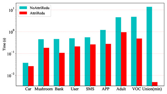 - Liang, B.H.; Liu, Y.; Shen, C.Y. Attribute Reduction Algorithm Based on Indistinguishable Degree. In Proceedings of the 2018 IEEE 3rd International Conference on Cloud Computing and Big Data Analysis (ICCCBDA), Chengdu, China, 20–22 April 2018. [Google Scholar]