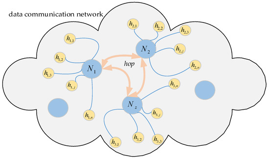 As shown in Figure 1, assume that the network G is made up of physical nodes N1, N2, …, Nz. The network parameters (IP address, port number, etc.) configured for the corresponding node Ni, i = 1, 2, …, z is denoted as hij, j = 1, 2, …, ξ. Typically, the set H = (hij)z×ξ remains constant during the work, while nodes can rely on H for mutual access. For each node, it is specified that at every period T, a parameter is selected from H and configured to it by some rule, and its network parameters are changed every period T. For this change, it is called network hopping, and T is the hopping period.