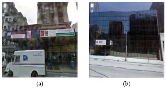 Therefore, in this study, to compensate for the lack of training data, the Pix2pix learning model was used to create the virtual raindrops on an image. A raindrops dataset was obtained by forming raindrops on 1100 pairs of existing data images and approximately 6600 general road-view images []. The input size of the image is 256 × 256 for the training. For learning, the batch size of Pix2pix was set to 3, and the number of repetitions was set to 400. This dataset was inputted into the Pix2pix model to form the virtual raindrops. However, the activation function of the discriminator was set to Leaky ReLU, not a sigmoid function, to prevent gradient loss in the optimization of the loss function during training []. In addition, the gradient of the loss function was continuously updated during the learning process, which could result in different batch-unit data distributions for each layer. Therefore, the data distribution was adjusted by adding batch normalization, and overfitting prevention during the learning process was pursued [].